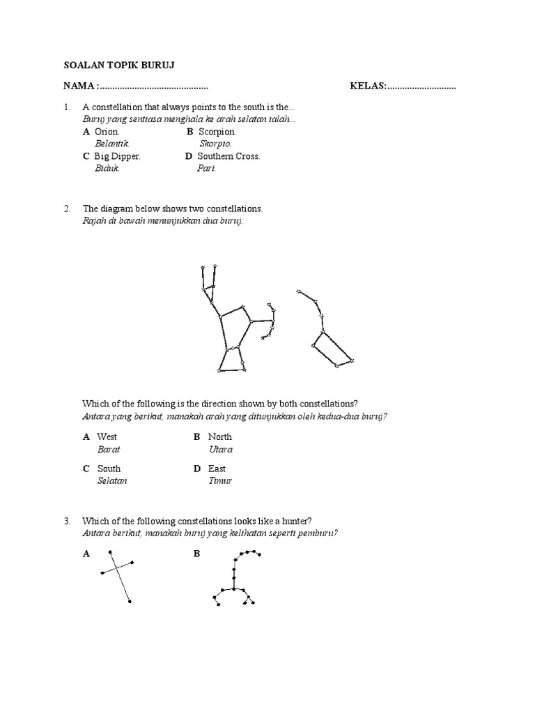 Soalan Topik Buruj Wilayah Langit Ptolemaeus