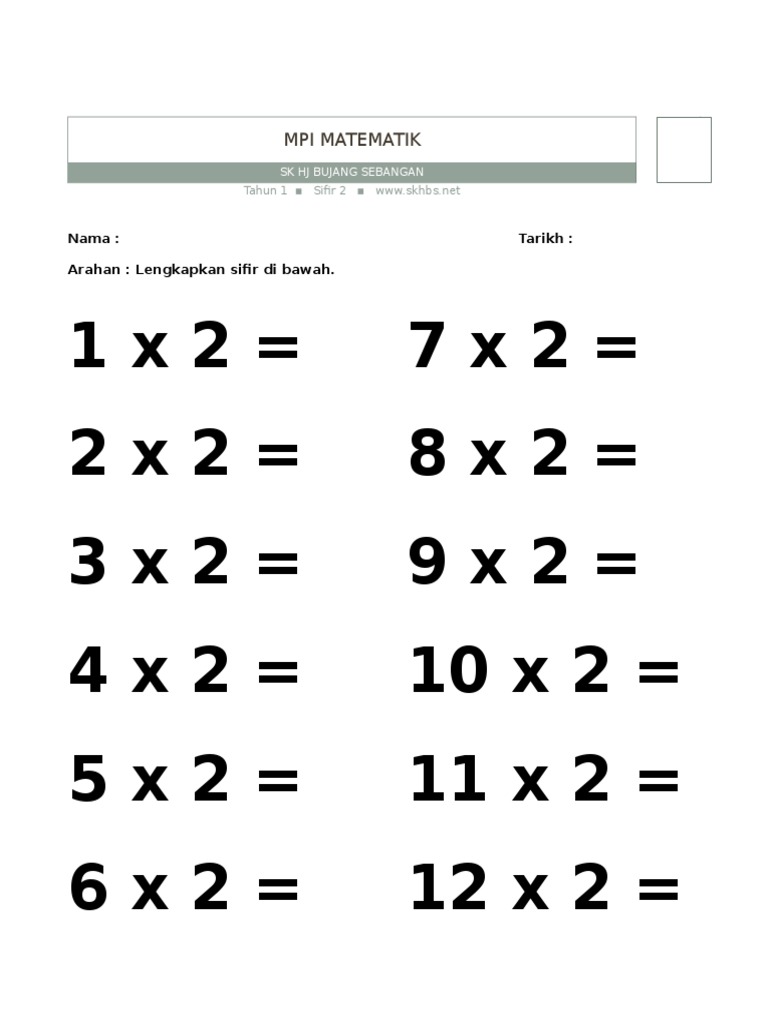 Soalan Sifir Matematik Tahun 2 Selangor T