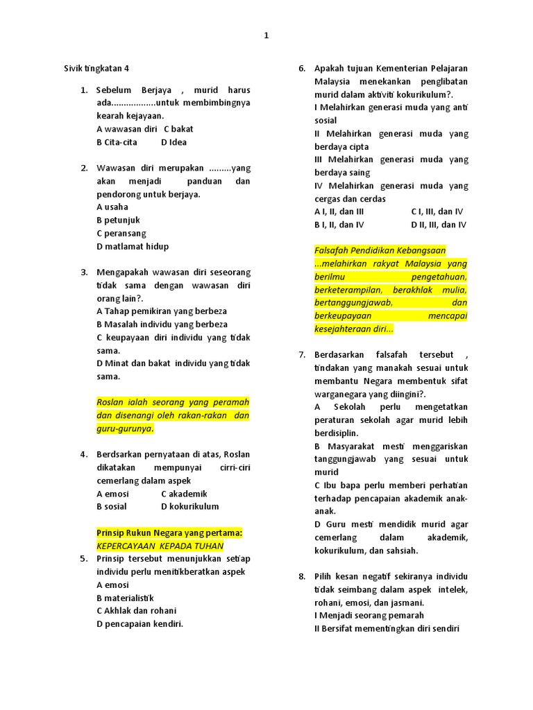 Sivik Dan Kewarganegaraan Tingkatan 5 Peperiksaan Bab 1 Hingga 4