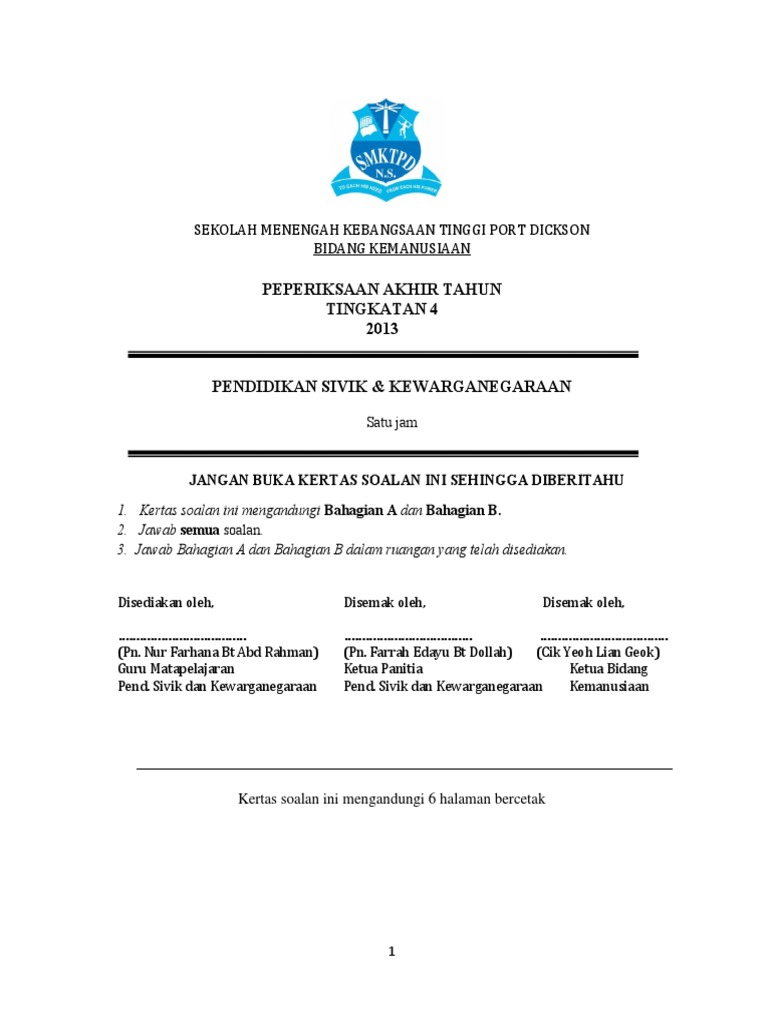 Upt Pendidikan Sivik Kewarganegaraan Tingkatan 4 Sumber Pendidikan