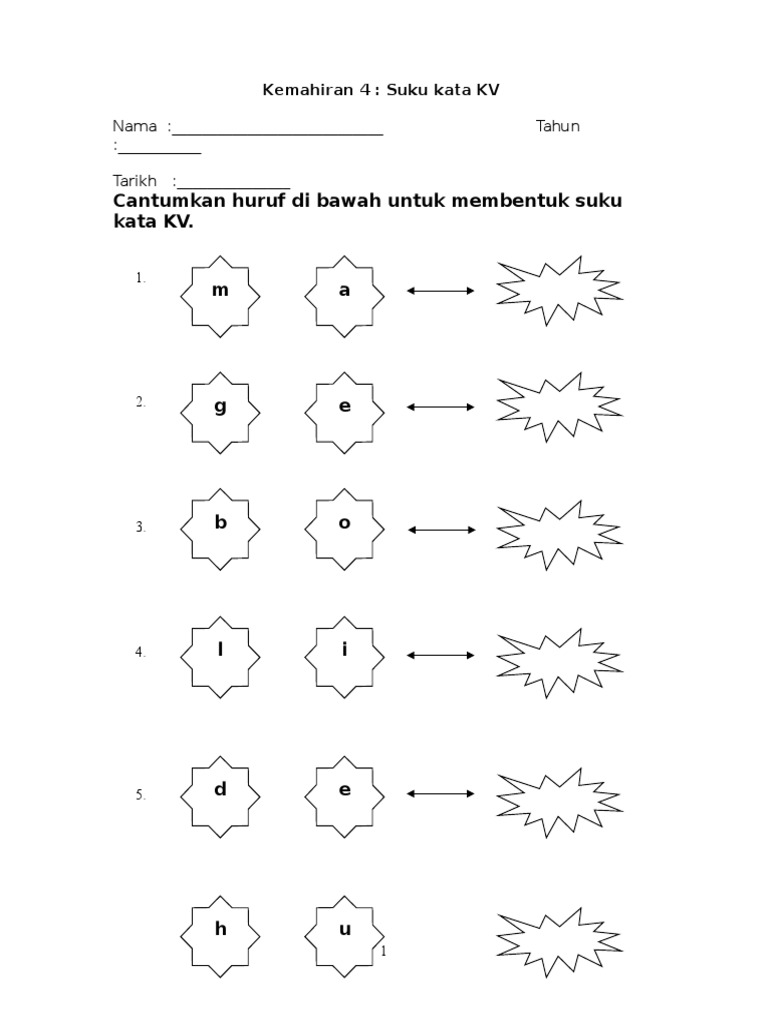 Lembaran Kerja Kemahiran 4 Suku Kata Terbuka Kv