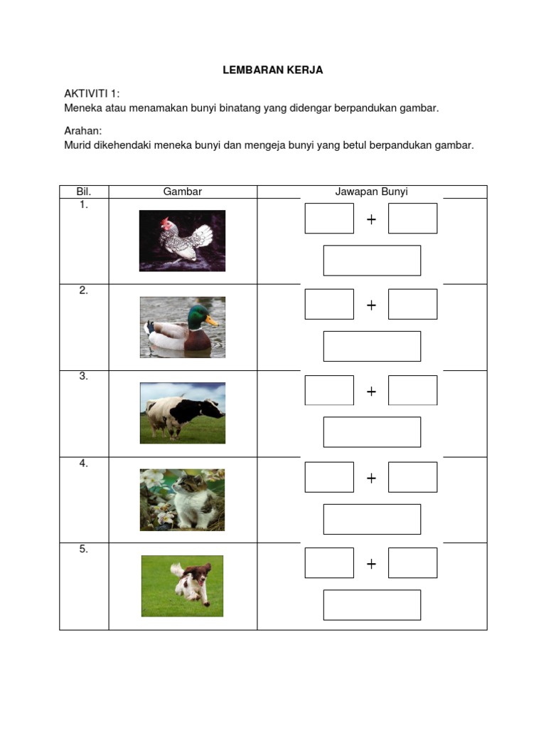 Bunyi Haiwan Lembaran Kerja Tahun 1 Docx Document