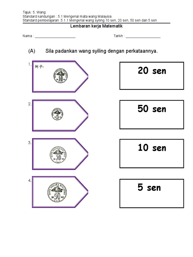 Lembaran Kerja Mengenal Wang Bulat Nilai Wang Kitpramenulis