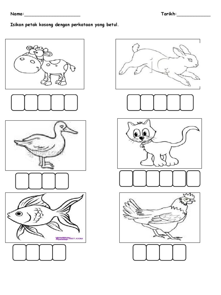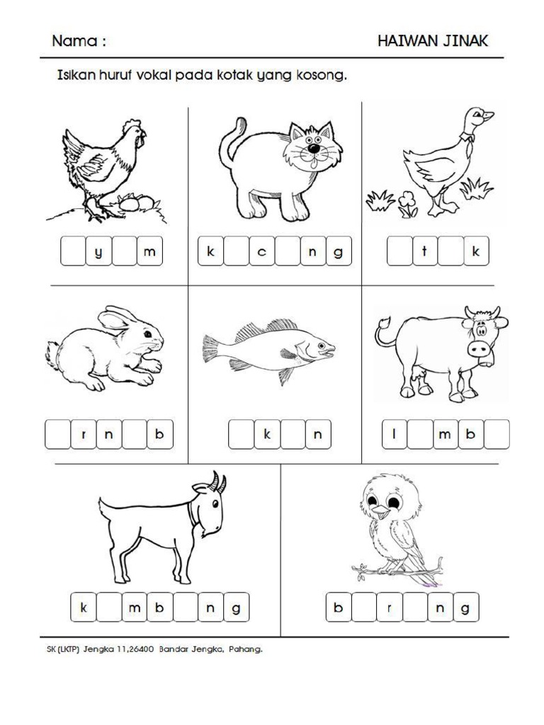 Bahasa Malaysia Prasekolah Latihan Haiwan Jinak Preschool Worksheets Alphabet Worksheets Preschool School Kids Activities