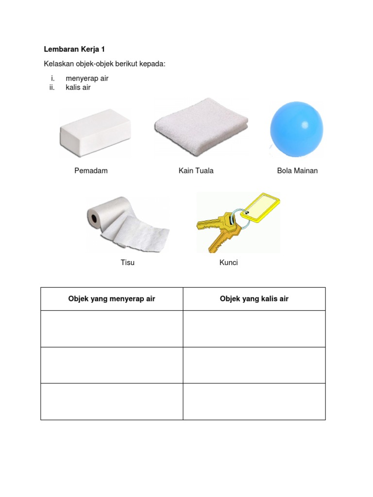 Sains Tahun 1 Penyerapan Interactive Worksheet