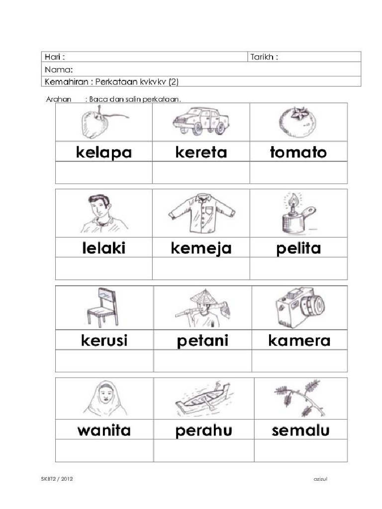 Latihan Bahasa Melayu Huruf Vokal Dan Sukukata Kvk Kvkv Kitpramenulis