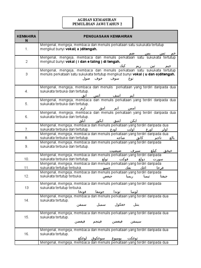 Suku Kata Terbuka Jawi Kssr Pendidikan Islam Tahun I