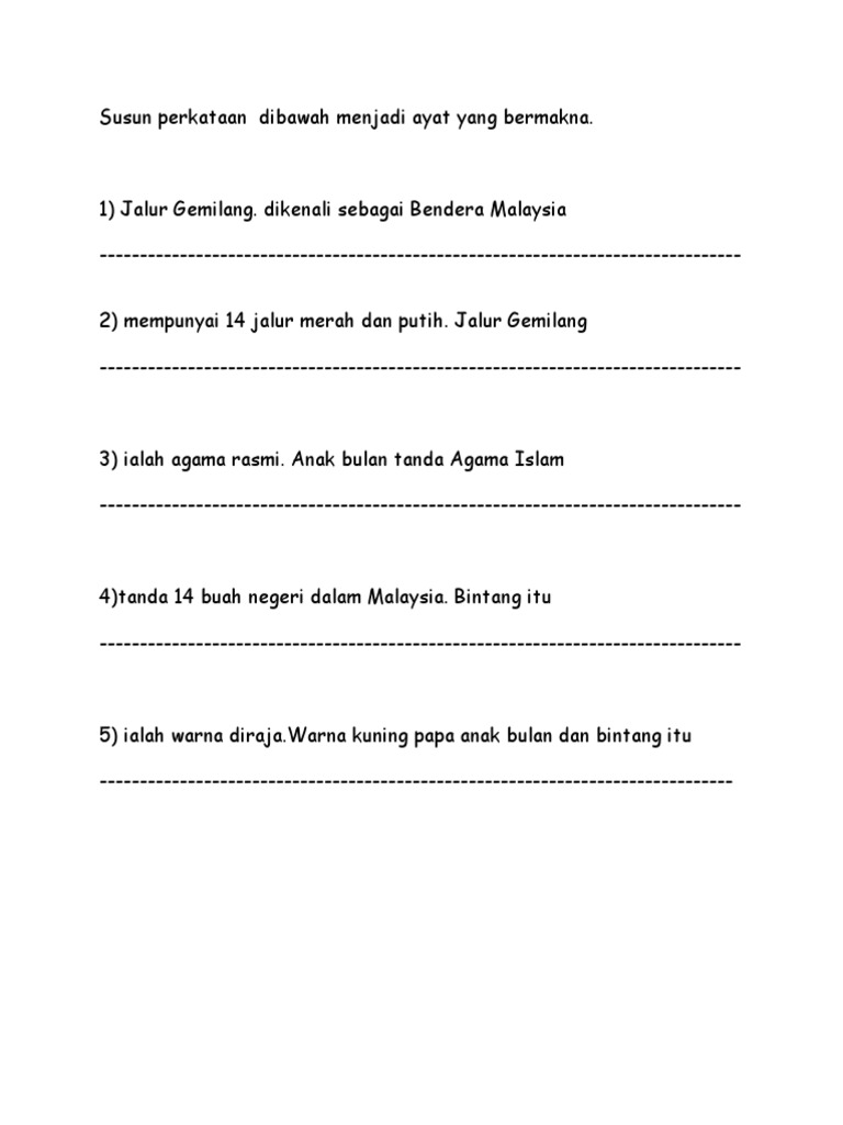 Susun perkataan supaya menjadi ayat yang betul 1. Susun 6 perkataan set 1. Dan dia tambah lagi sebaris ayat ko tak pe la ada laki.