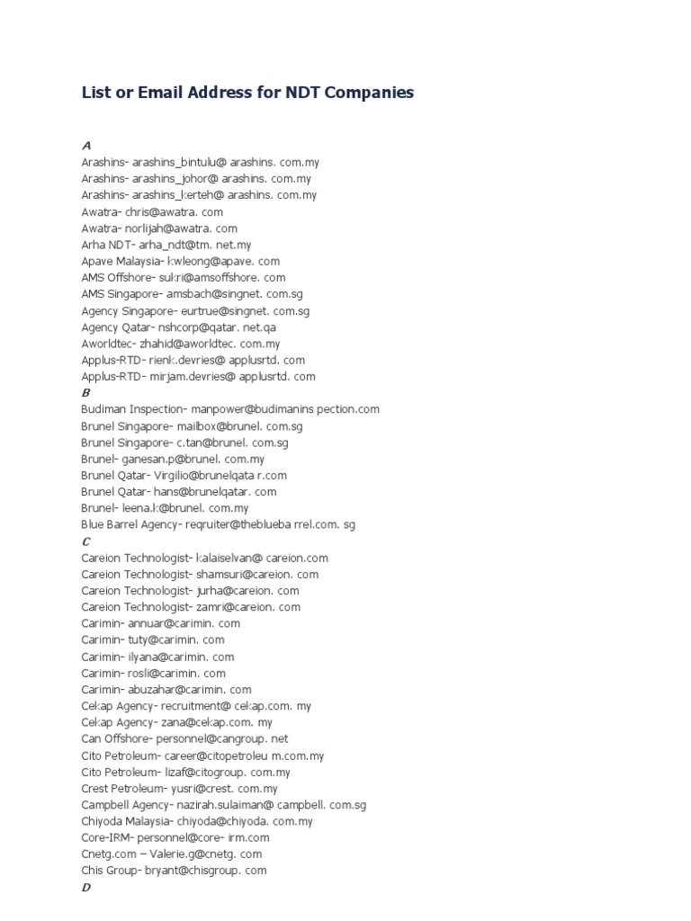 List Of Ndt Company And Emails