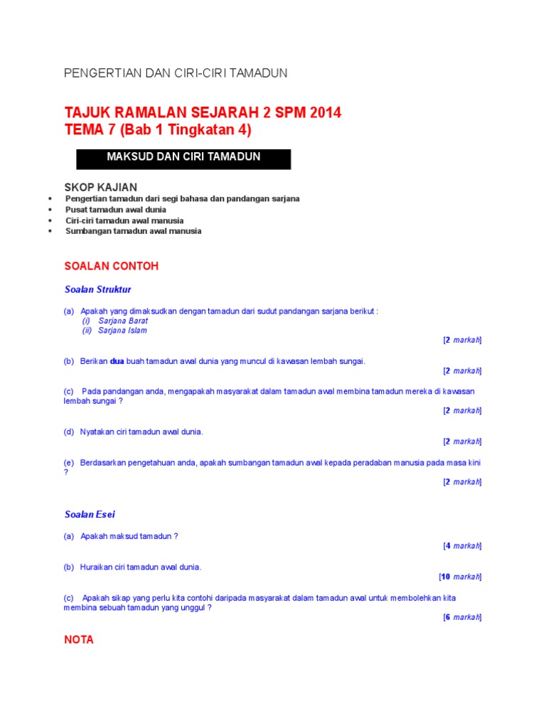 1 2 Nota Ringkas Ciri Ciri Tamadun Spmflix Com Free Spm Tuition