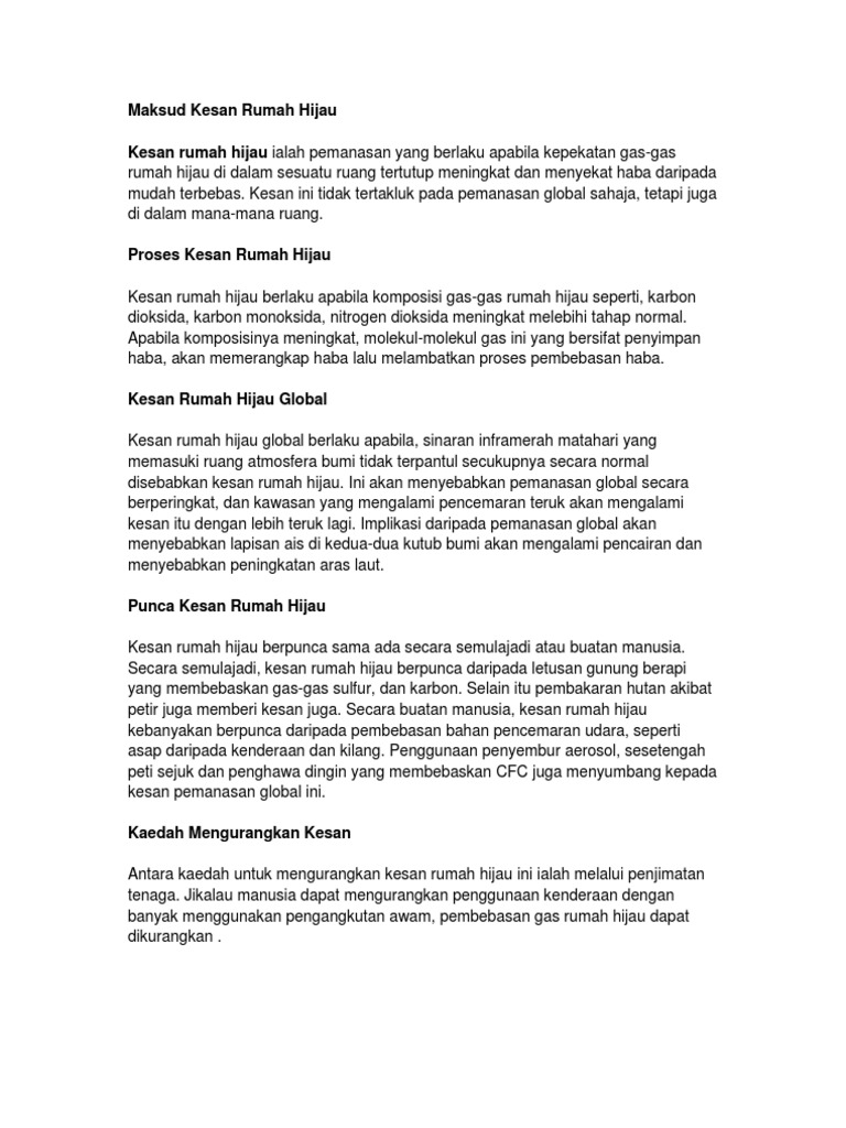 Punca Dan Kesan Rumah Hijau Pemanasan Global Dan