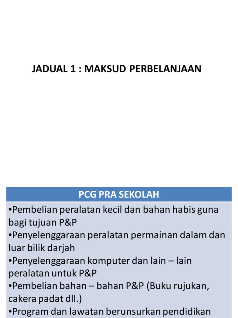 Jadual 1 Maksud Perbelanjaan