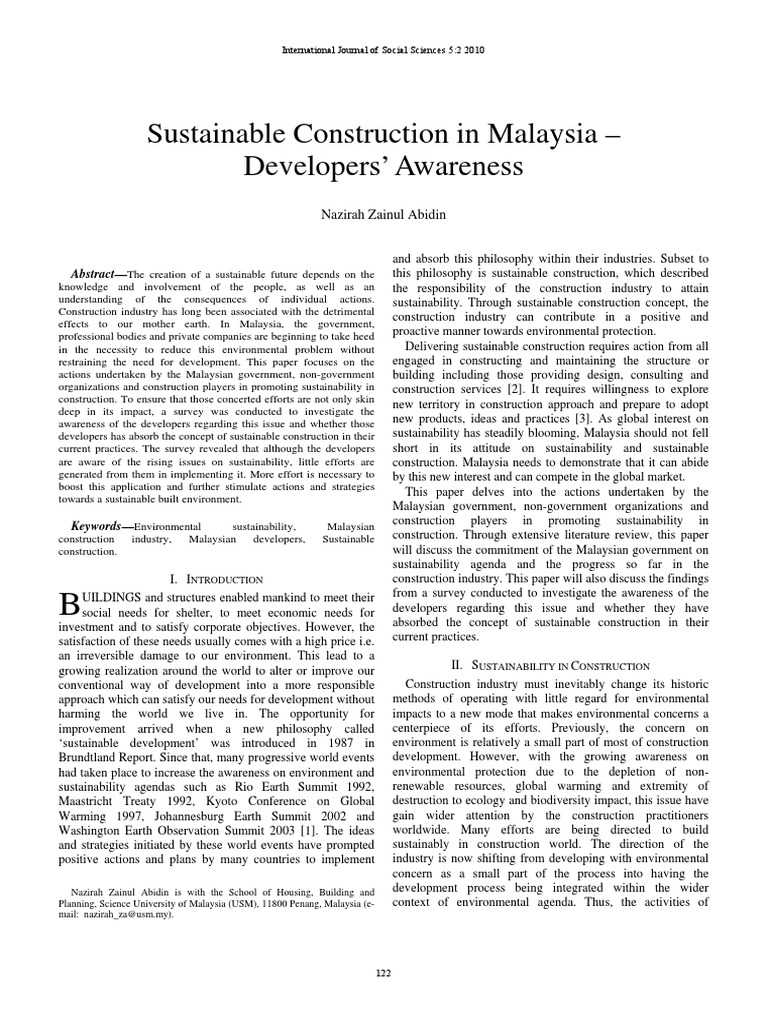 Sustainable Construction In Malaysia Pdf Sustainability Quantitative Research