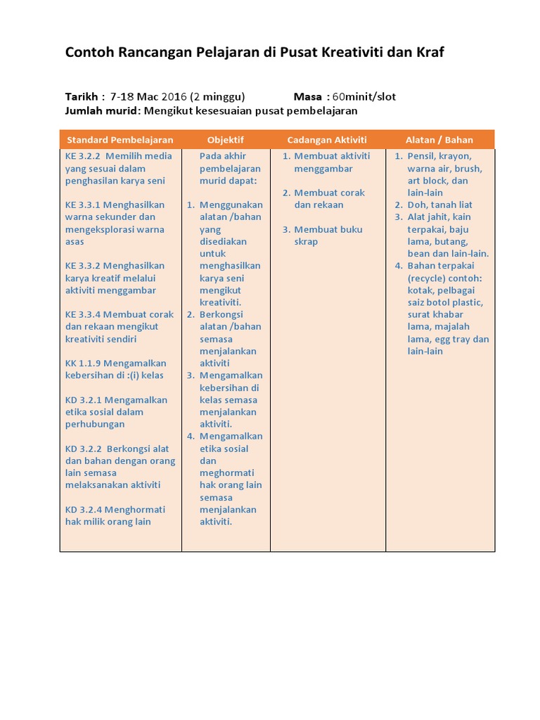 Rancangan Pelajaran Pusat Pembelajaran Kreatif Dan Kraf Docx