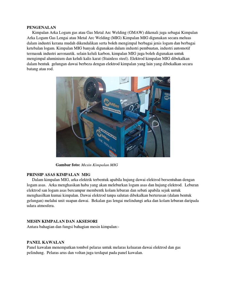 Teknologi Kimpalan Welding Technology Kimpalan Arka Logam Gas Lengai Mig