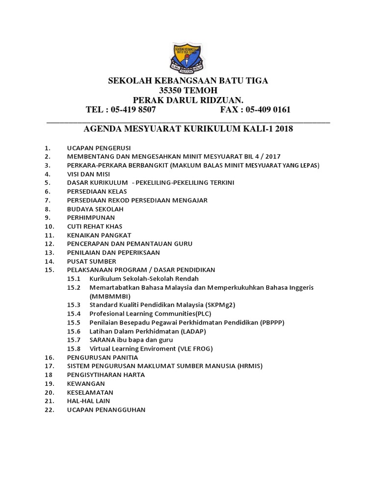Doc Minit Mesyuarat Jawatankuasa Kurikulum Kali Pertama 2014 Sekolah Kebangsaan Sungai Rokam Lokman Noor Academia Edu