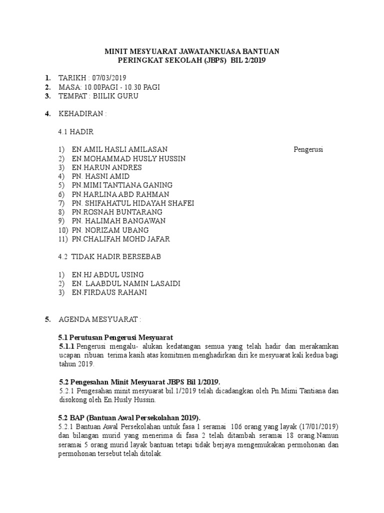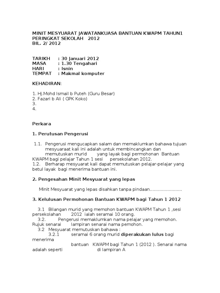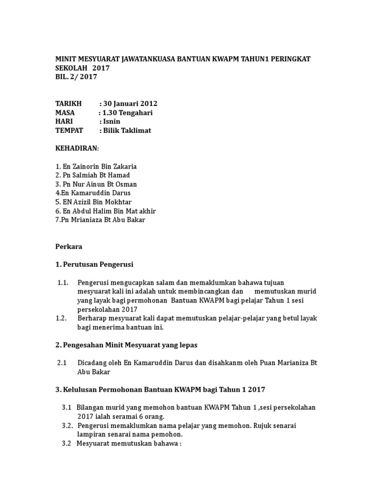 Minit Mesyuarat Jawatankuasa Bantuan Sekolah Kwapm 2020 Pages 1 5 Text Version Anyflip