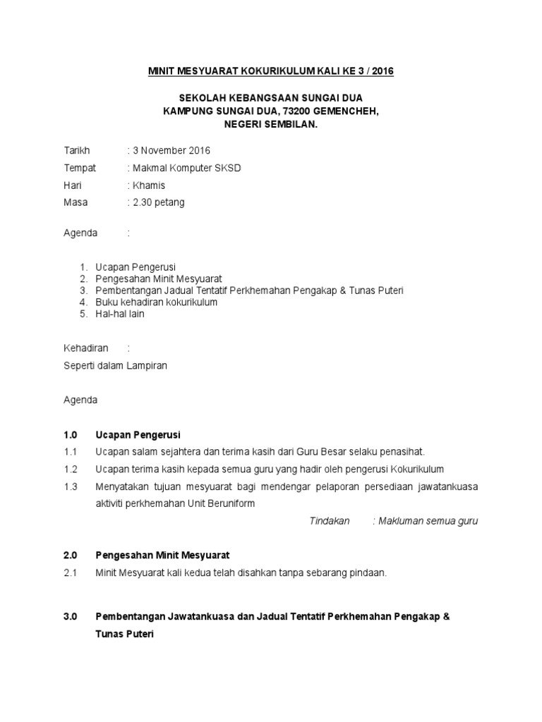 Doc Minit Mesyuarat Ko Kurikulum Sk Putra Kali Ketiga 2015 Mohamad Farid Hamali Academia Edu