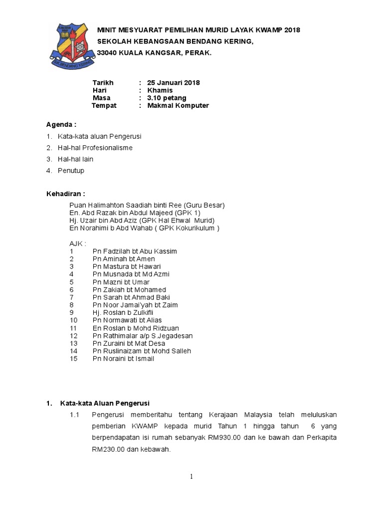 Minit Mesyuarat Pages 1 3 Text Version Anyflip