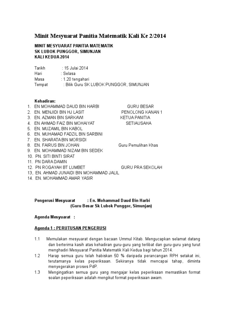 Doc Minit Mesyuarat Panitia Matematik Kali Pertama 2014 Hafiz Mohd Academia Edu