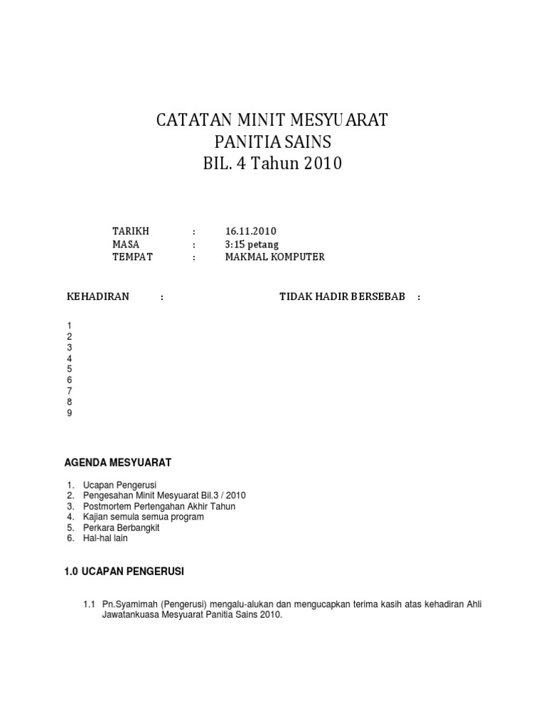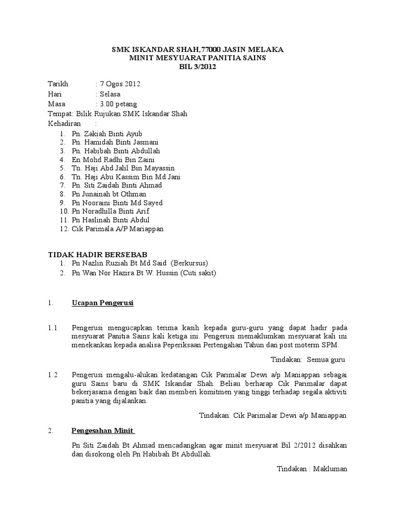 Minit Mesyuarat Panitia Sains Bil1 2018 Pages 1 5 Text Version Anyflip