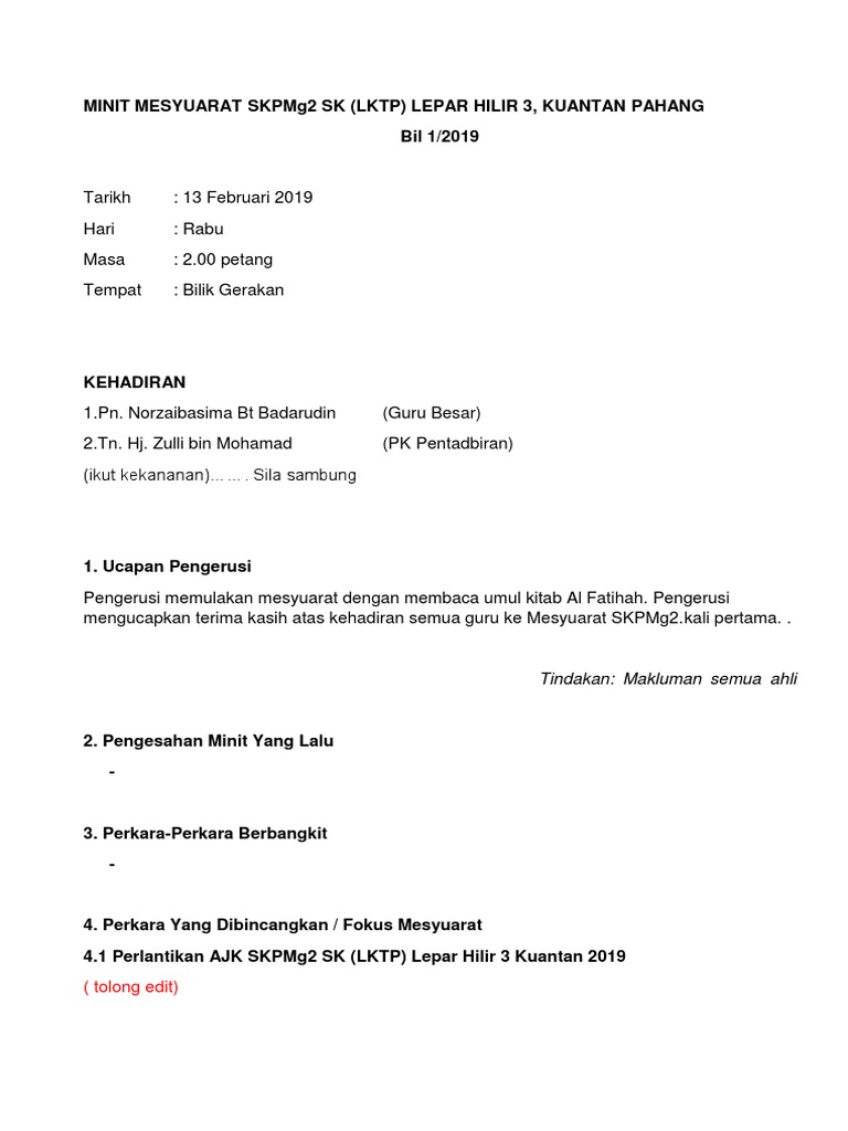 Minit Mesyuarat Pengurusan Pentadbiran 2020 Bil 1 2020 Pages 1 12 Text Version Anyflip