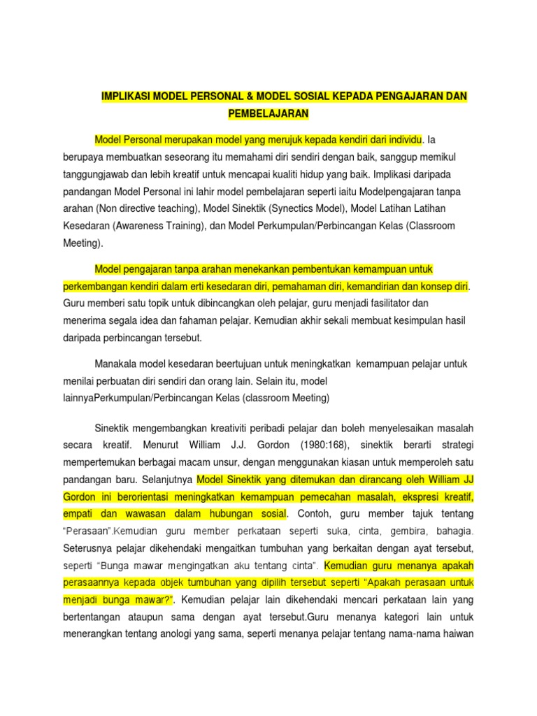 65848618 Implikasi Model Personal Model Sosial Kepada Pengajaran Dan Pembelajaran Sylvester Jonny