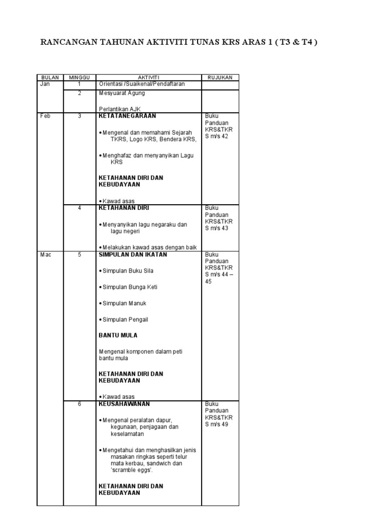 Rancangan Tahunan Aktiviti Tunas Krs Tahun 4 5 6