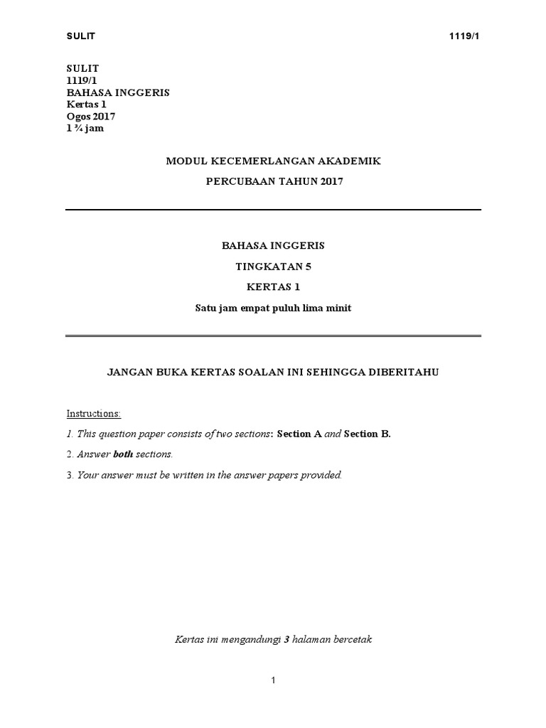 Kertas 2 Pep Percubaan Spm Pahang 2017 Soalan Pdf Sulit 1119 2 Sulit 1119 2 Bahasa Inggeris Kertas 2 Ogos 2017 2 U00bc Jam Modul Kecemerlangan Akademik Course Hero