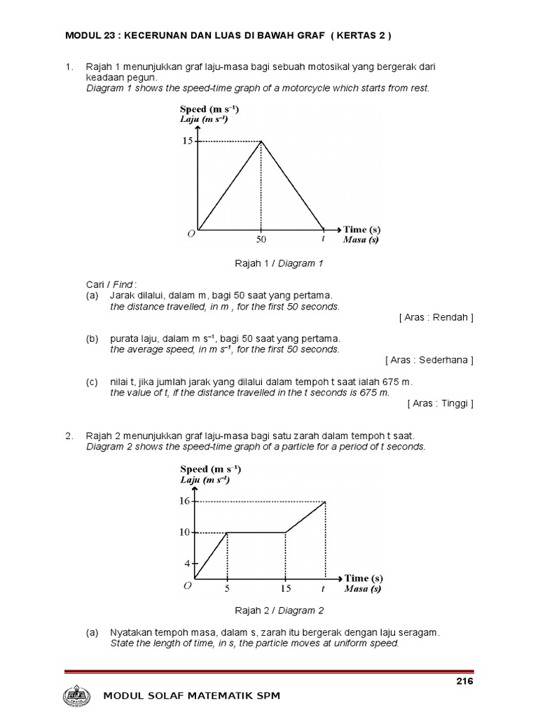Contoh Modul Soalan Matematik Luas Di Bawah Graf