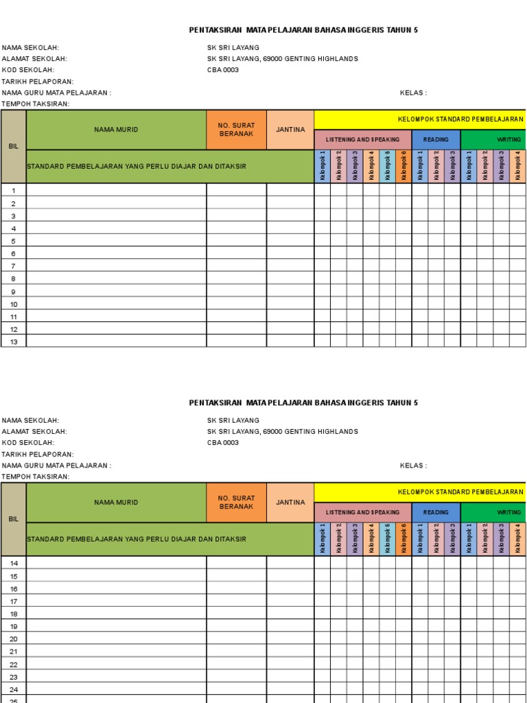Koleksi Terkini Templat Pelaporan Pbd Kssr Tahun 5 Bumi Gemilang