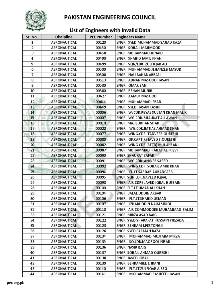 List Of Engineers With Invalid Data Pdf Pakistan Violence