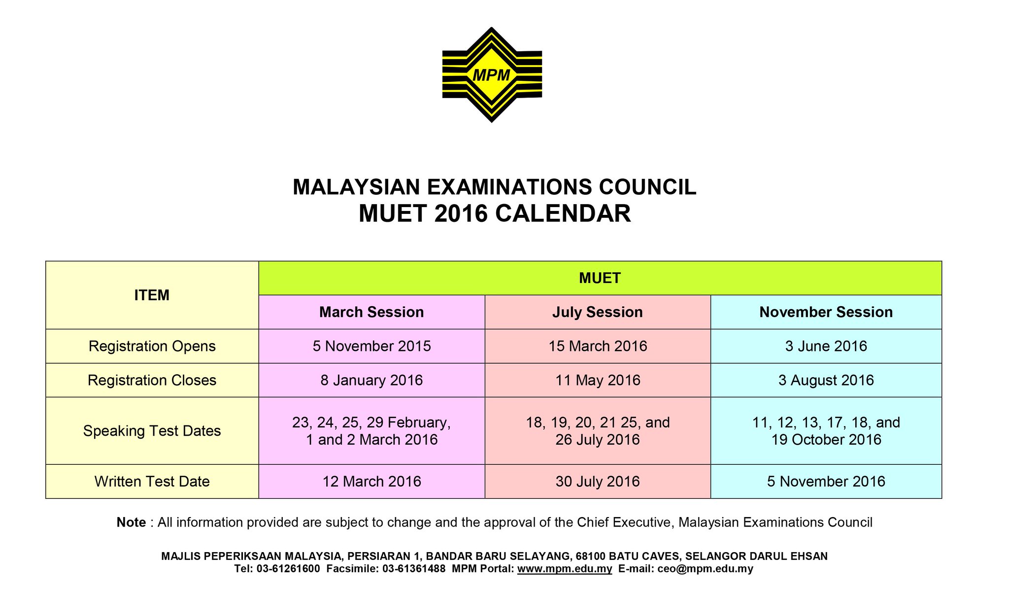 Utem Malaysia On Twitter Reg For Muet July 2016 Is Open From 15 3 2016 11 5 2016 Exam Fee Is Rm100 Registration Can Be Done At Bpa Counter Https T Co Km3pcmwuwu
