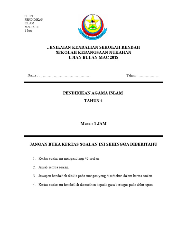 Contoh Muka Depan Soalan Upsr Soalan O