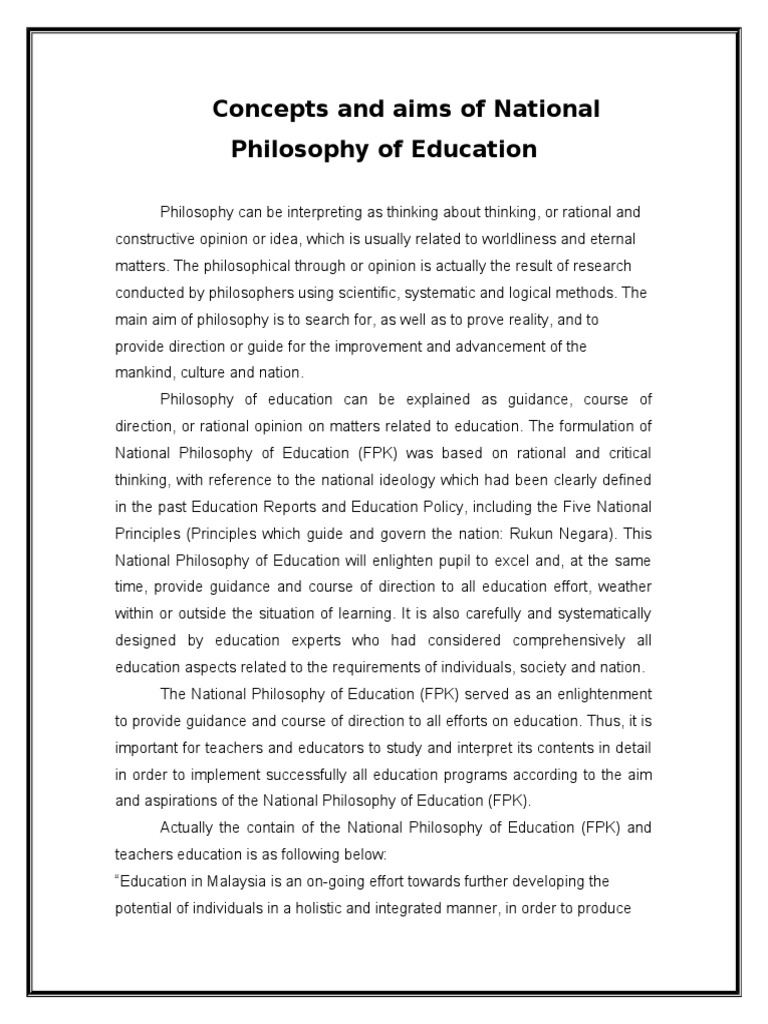 National Philosophy Of Education