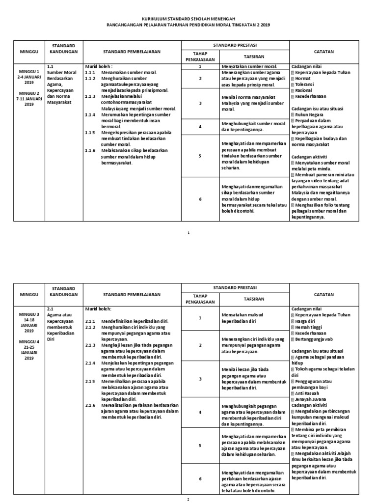 Rpt Pendidikan Moral Tingkatan 2 2019 Kssm Sp
