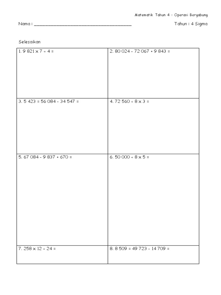 Lembaran Kerja Operasi Bergabung Tahun 5 Math Worksheets Worksheets Math